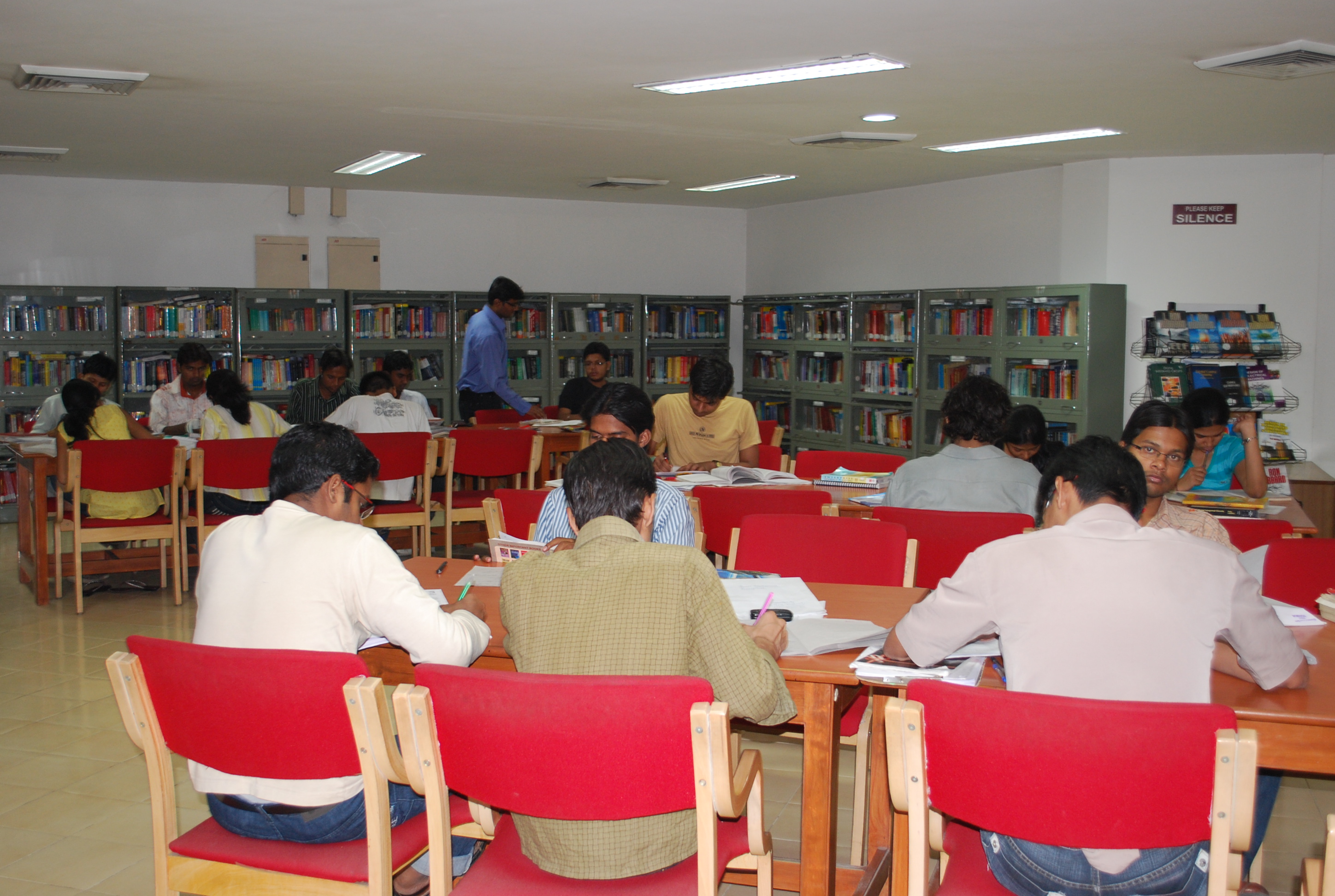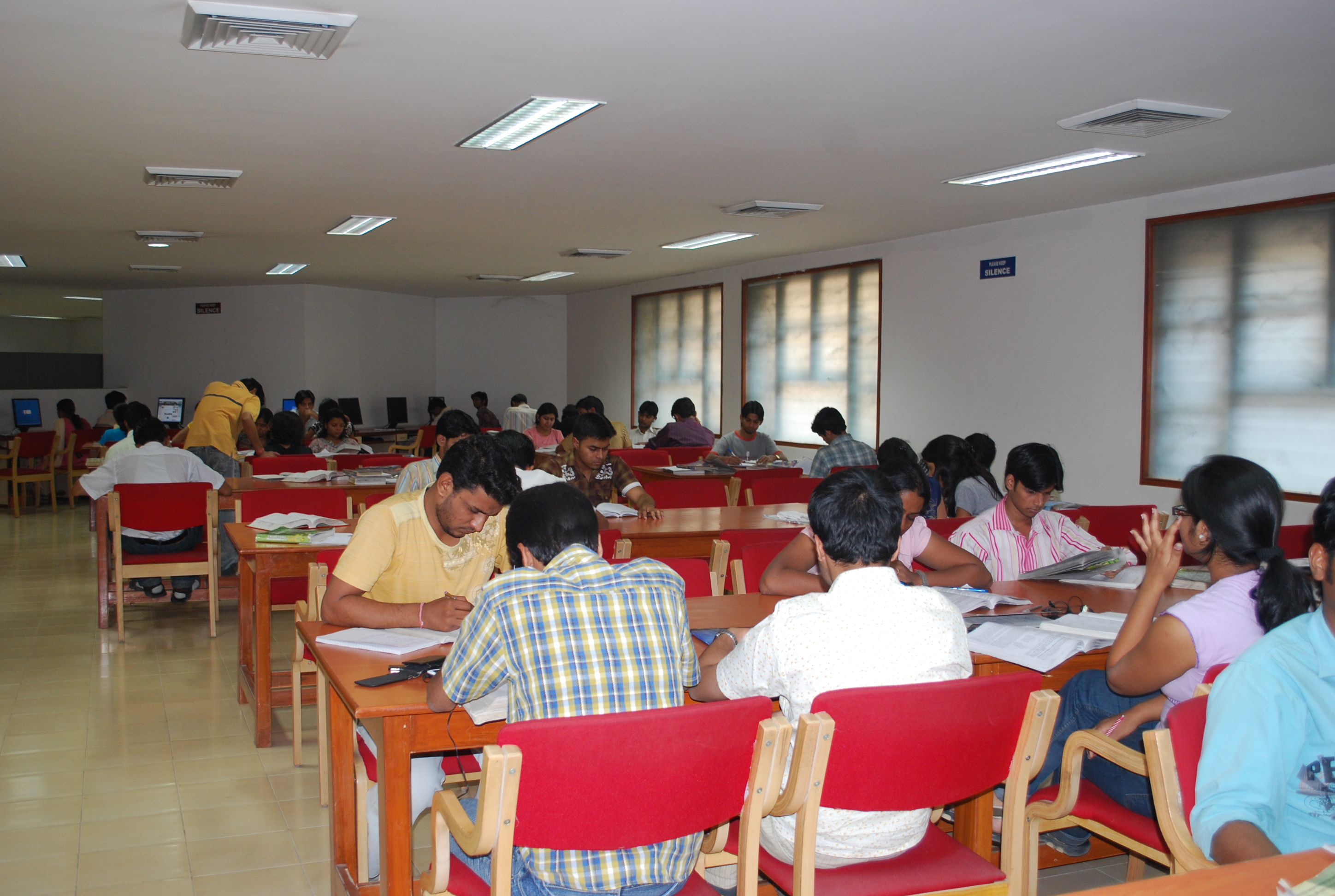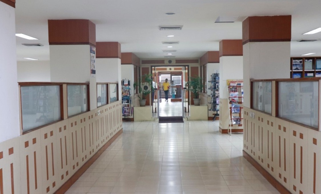 Ground Floor:Circulation & Technical Section, Reprographic, Book Bank Section, MBA Section, Newspaper Section, Laptop section and Discussion area.