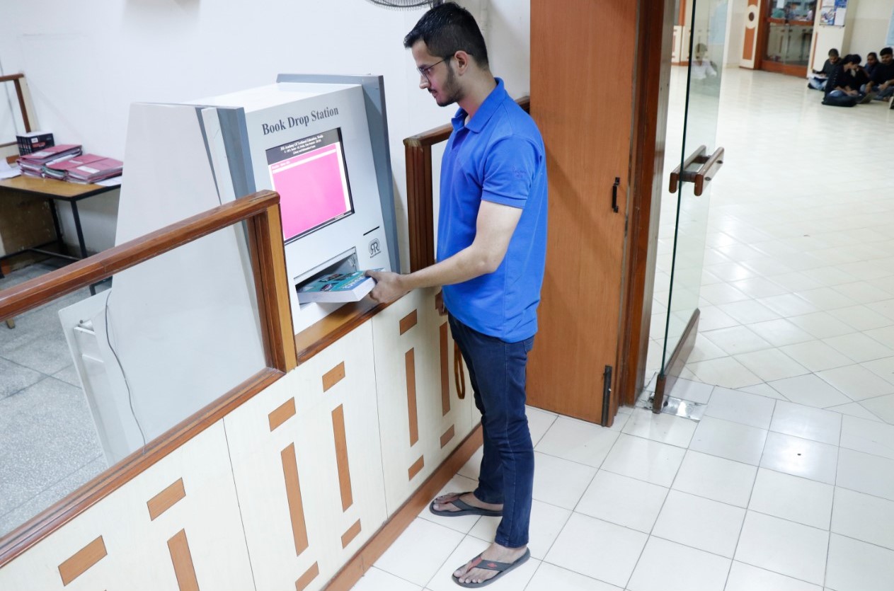 In 2016, Library implemented RFID enabled Automation and Surveillance. Every document in the Library is being tagged with RFID tags and users are being issued Smart cards. One self –services station is installed to facilitate users with self issue/return of documents and one automatic drop box have been installed to return the books. Two security gates, i.e. theft detection pedestals, have been installed at the entrance and exit gates of the library to check the movement of unissued books outside the library. The database of books available in the Library is being updated on day to day basis with details of recently acquired books.