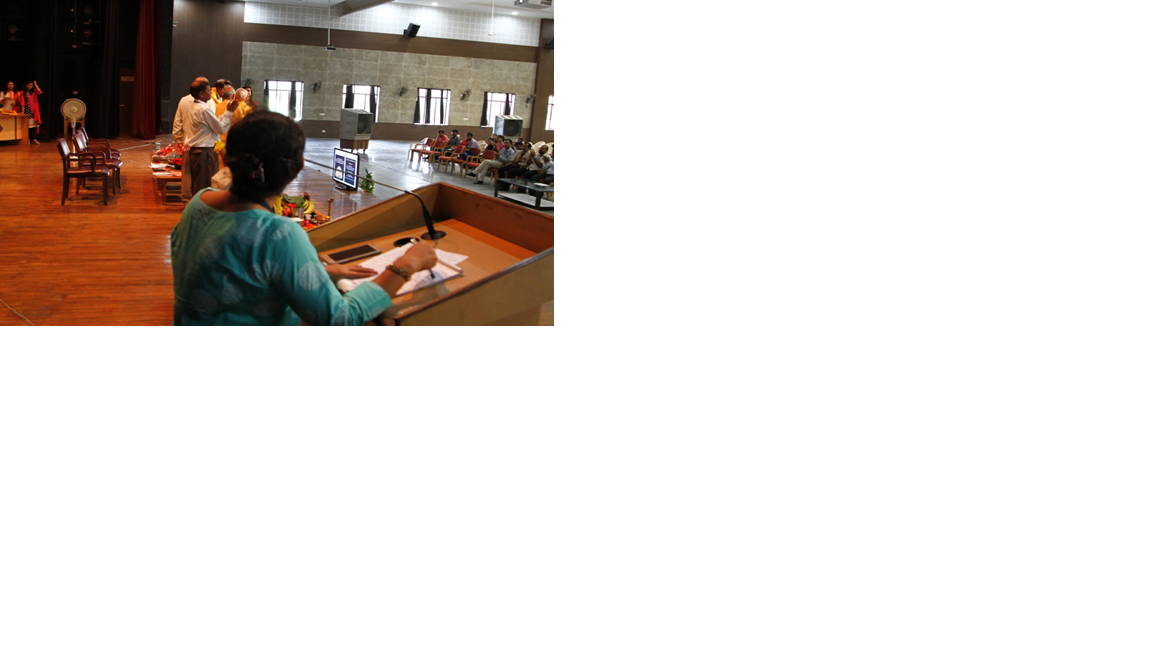 Dignitaries, Dr. G. M. Patil, Principal, JSSATE-Noida, Cmdr. B. K. Gupta, CAO, JSSATE-Noida, Guest of honor Mr. V.K. Singh, Commissioner GST New Delhi, Mr. R. N. Singh, Chief Administrator, Gayatri Chetna Kendra, Noida, Mr. U S Gupta, Coordinator,Bharitiya Sanskriti Gyan Pariksha and representative of Shanti Kunj, Haridwar at the stage and participants. Dr. Kokila Saxena, Faculty, Dept. of Management Studies hosting the programme.