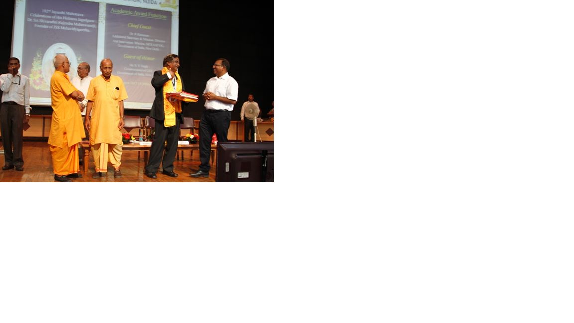 Mr. R. N. Singh Chief Administrator, Gayatri Chetna Kendra Noida, Mr. U S Gupta coordinator Bharitiya Sanskriti Gyan Pariksha and representative of Shanti kunj Haridwar honouring Dr. G. M. Patil Principal JSSATE Noida.
