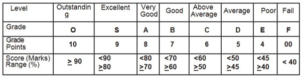Composition of SEE marks and CIE marks: Weightage is given for Semester End Exams (SEE) and Continuous Internal Evaluation (CIE) marks in the ratio of 60:40. Even though, SEE for both theory and laboratory conducted for 100 marks, which will be scaled down to 60 marks. The total marks scored in each course will be equal to 100, which is the sum of SEE marks and CIE marks.