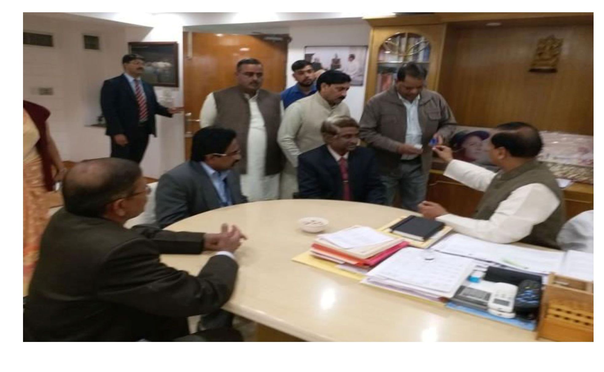 Culture, Minister Govt. Of India Dr. MaheshSharma discussing with Dr. Gurulingappa M Patil,Principal, JSSATE- Noida, Dr. RS Jagadish, Dr. Baidyanath Ram Prajapati about SAGY. Mr. Sanjay Bali and Mr. Pramod Prajapati and others were in presence.